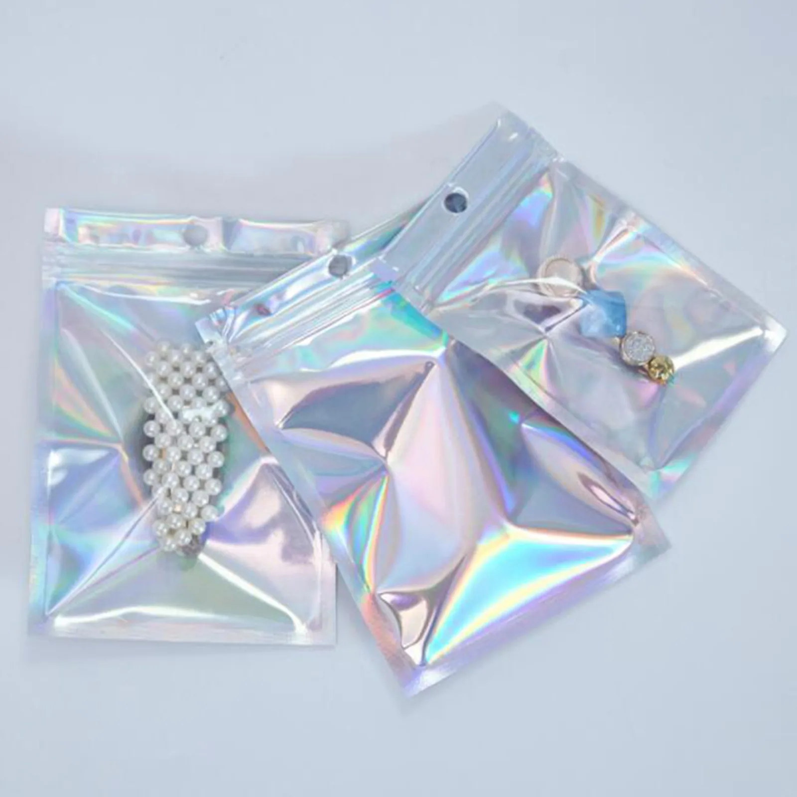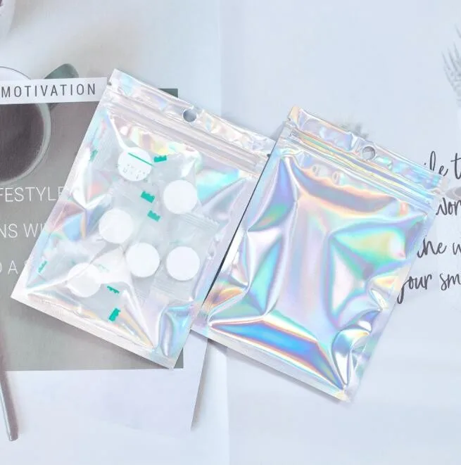 Пластиковые пакеты 100 шт. в упаковке, маленькие водонепроницаемые пакеты из алюминиевой фольги с голограммой для еды, пакеты на молнии для хранения