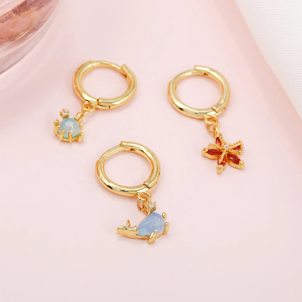 Маленькие серьги-гвоздики Ins, новая серия океан, ювелирные изделия с животными, покрытые золотом 18 К, с цветным цирконием, милые фишарики