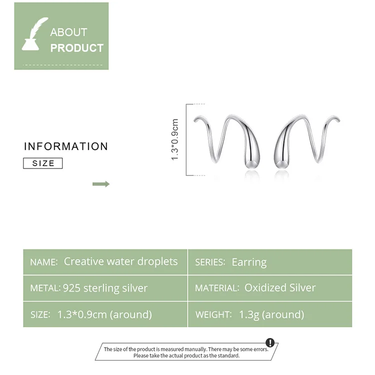 ❤[Описание] форма струящейся воды создана как красивый изгиб и надевается на ухо, чтобы подчеркнуть неповторимое очарование женщин.❤[Спецификация] Размер: 1,3*0,9 см, вес: 1,3 г❤【Материал: 】 серебро 925 пробы и окисленное серебро, эти серьги не содержат никеля, свинца, кадмия, гипоаллергенны. Гарантия качества, приятно для кожи, удобно и удобно носить, не вредно для вашего здоровья.❤【Для подарка】 1 пара сережек и 1 Изысканная Подарочная коробка, которая станет идеальным подарком для мамы, дочери, внучки, тети, сестры, друзей.❤【BAMOER YOU】 чтобы обеспечить ваше полное удовлетворение, любые вопросы о продуктах BAMOER, просто не стесняйтесь обращаться к нам, мы постараемся сделать все возможное, чтобы помочь вам.