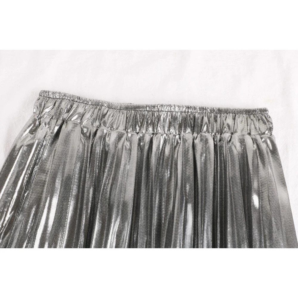 Элегантная женская юбка миди VD1824 с высокой талией, черная, серебристая, золотистая однотонная плиссированная юбка
