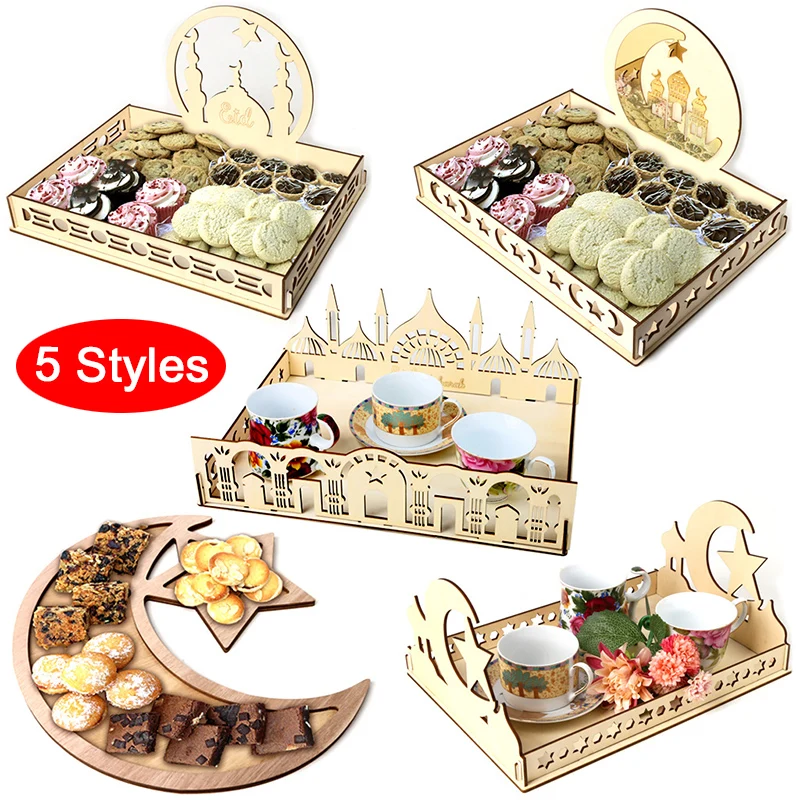 Деревянный десертный поднос ИД Мубарак украшения на Рамадан для дом...