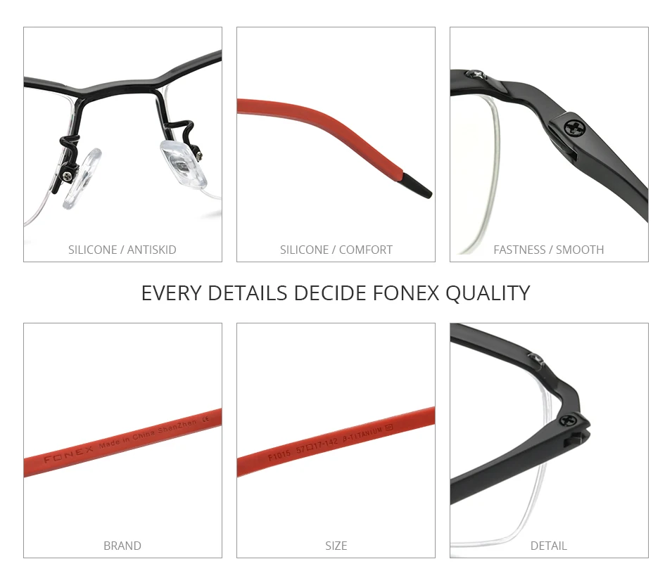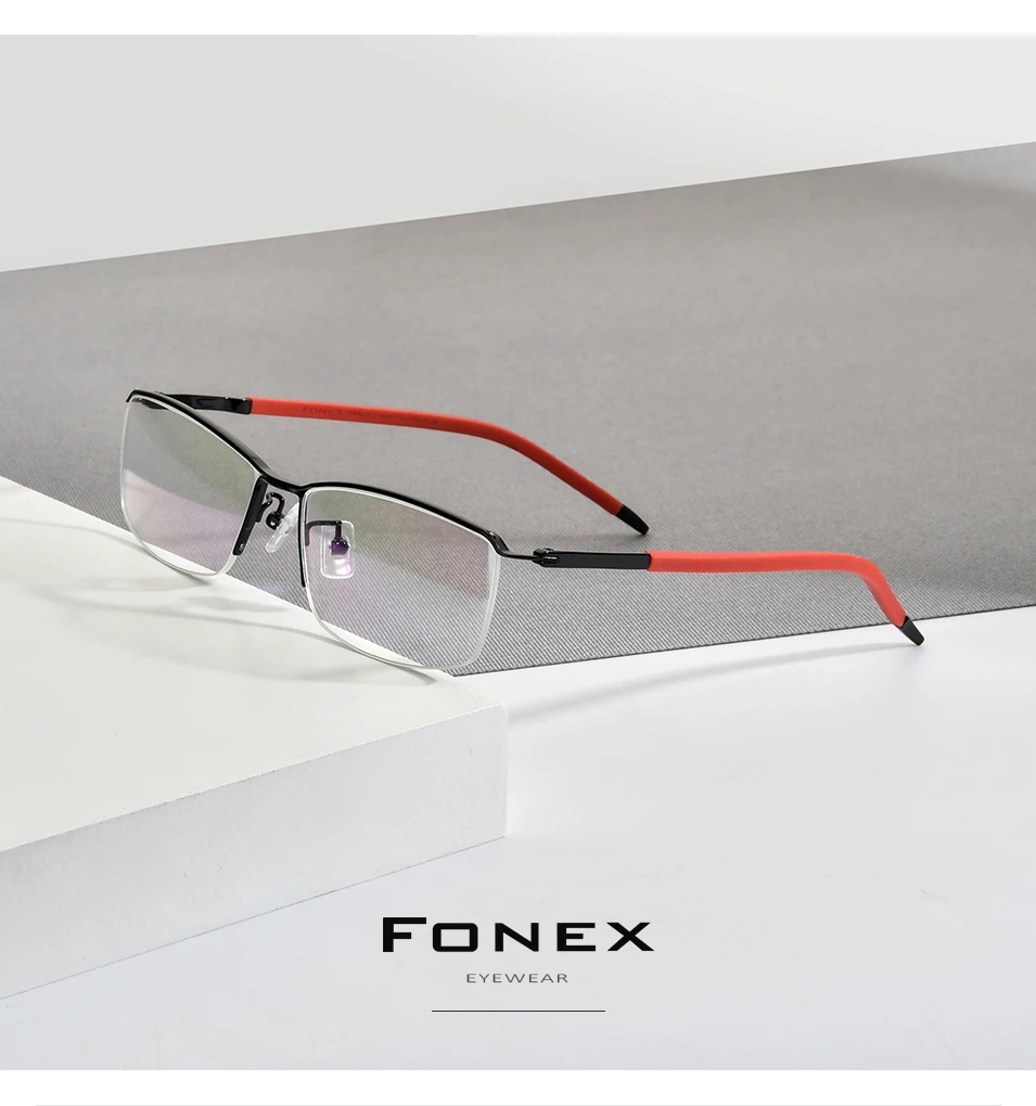 FONEX Мужские полуквадратные титановые оправы для очков от близорукости