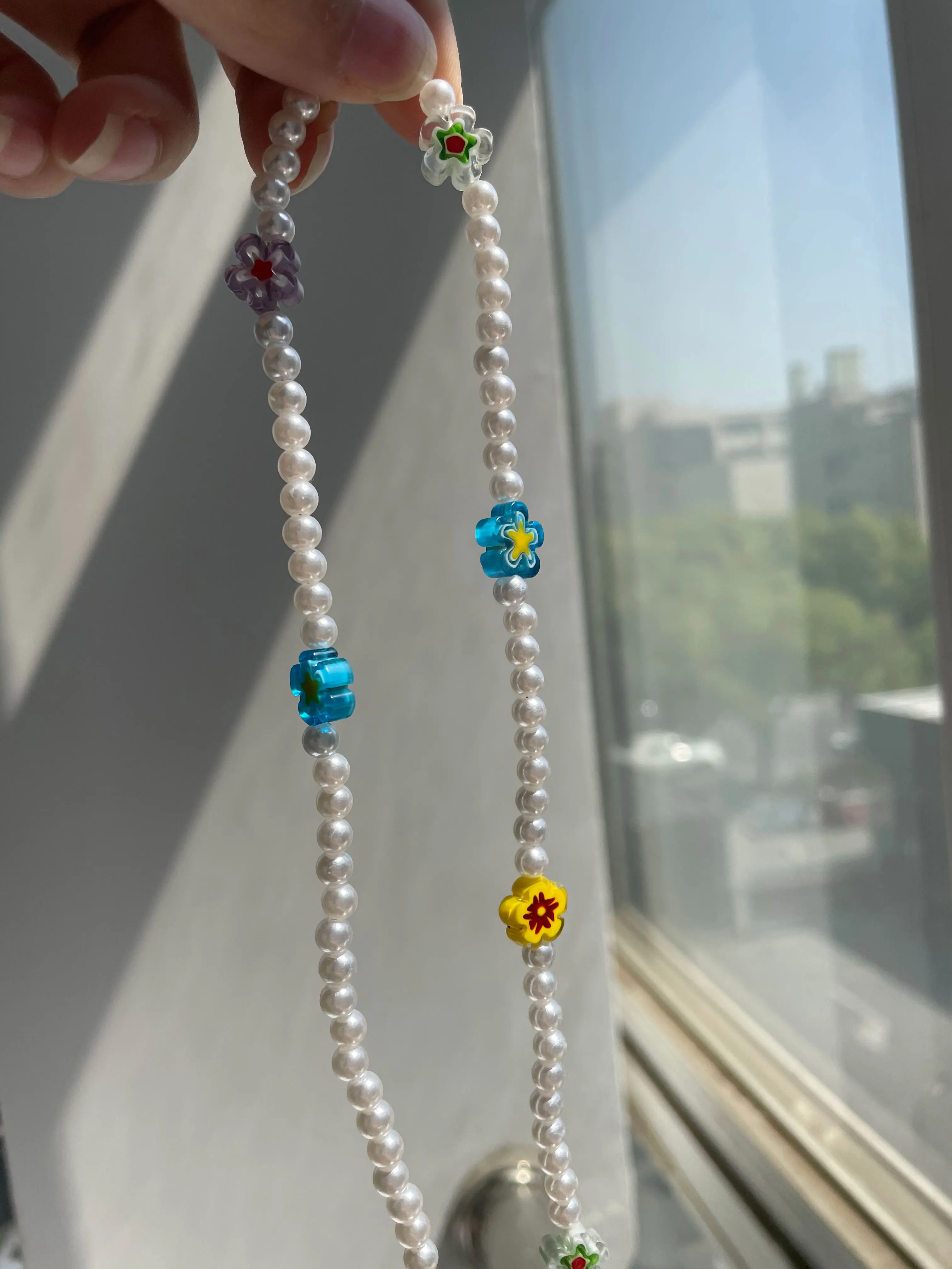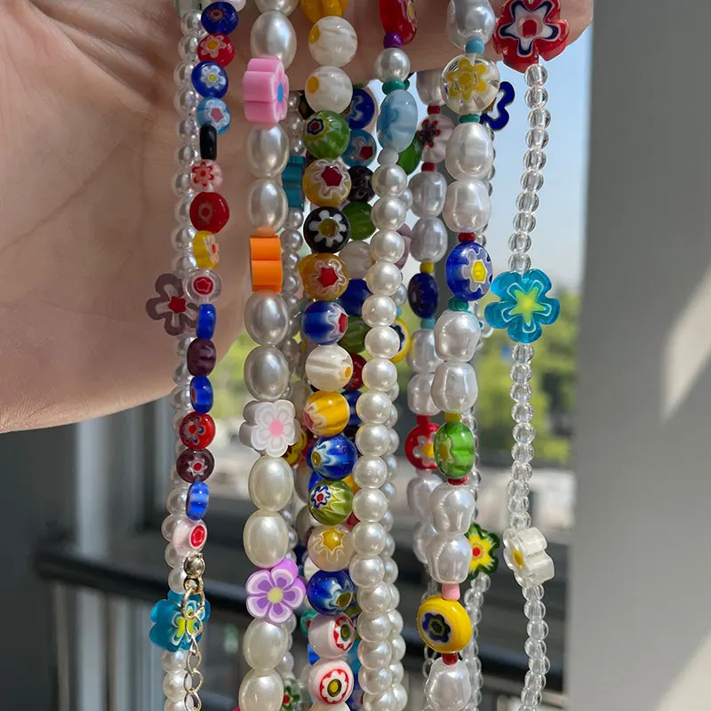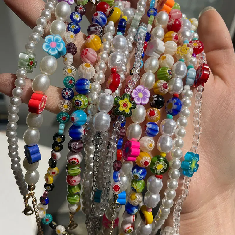 Цепочка с подвеской из прозрачных цветов для девочек, ожерелье с разноцветными бусинами и жемчугом из мягкой керамики, неправильной формы, ювелирное изделие, 2021