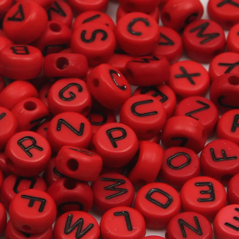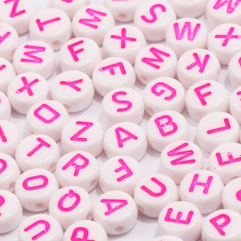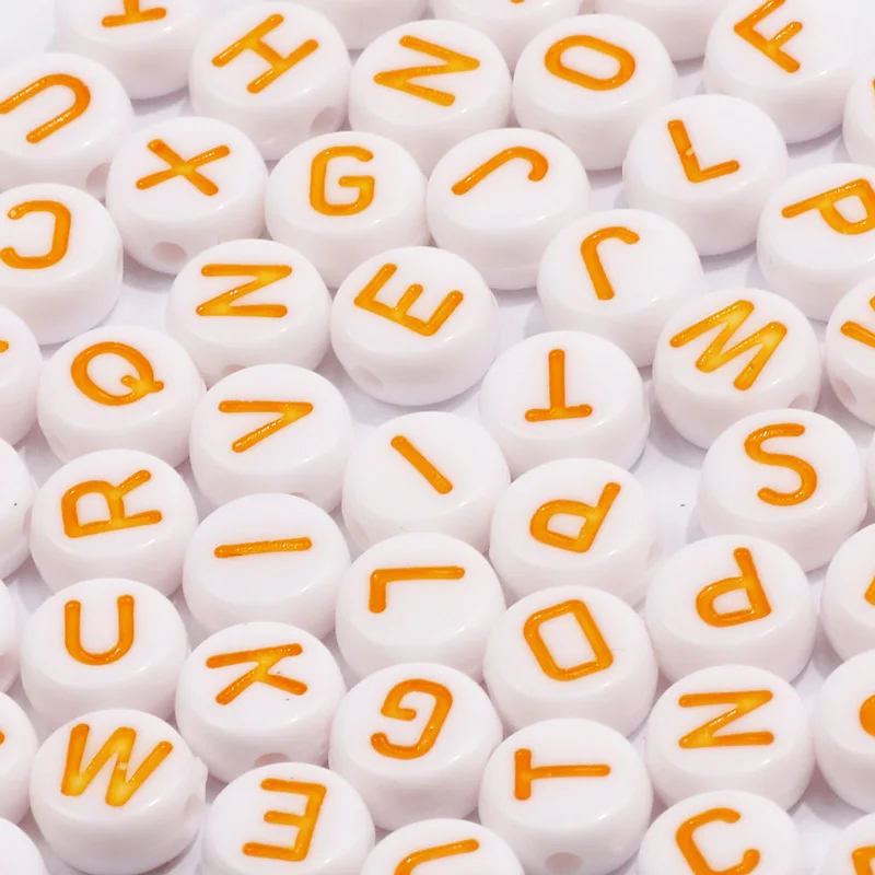 Бусины акриловые, 4 х 7 мм, с круглыми буквами, для изготовления юв...