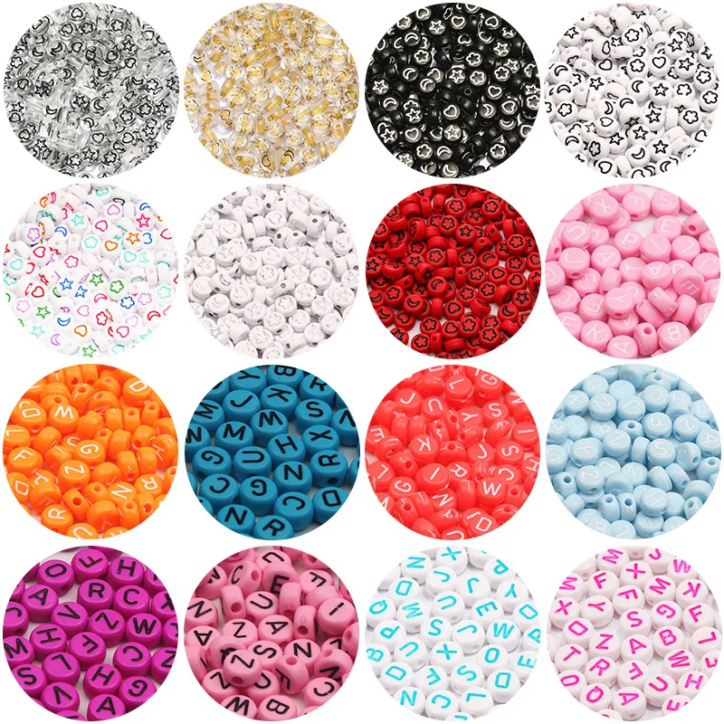 Круглые акриловые бусины с буквами 4x7 мм, микс прозрачных звездРаз...