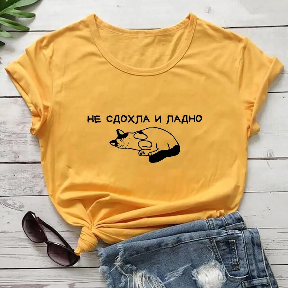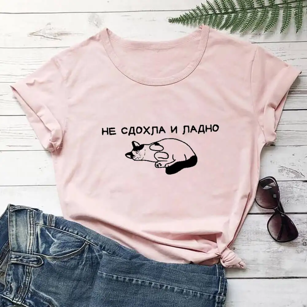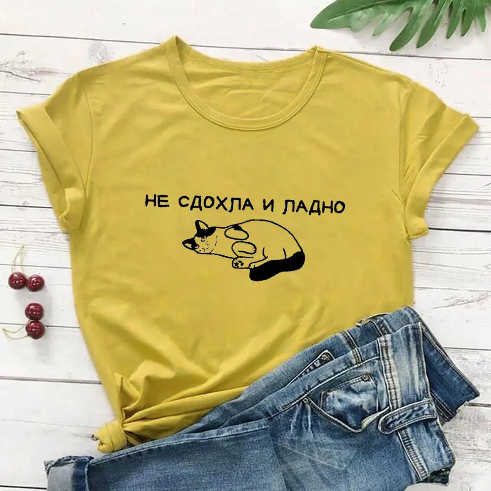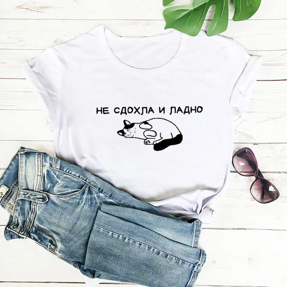 Не сдохла и ладно русская буква печать новое поступление женская прикольная летняя хлопковая футболка с коротким рукавом майка женская футболка