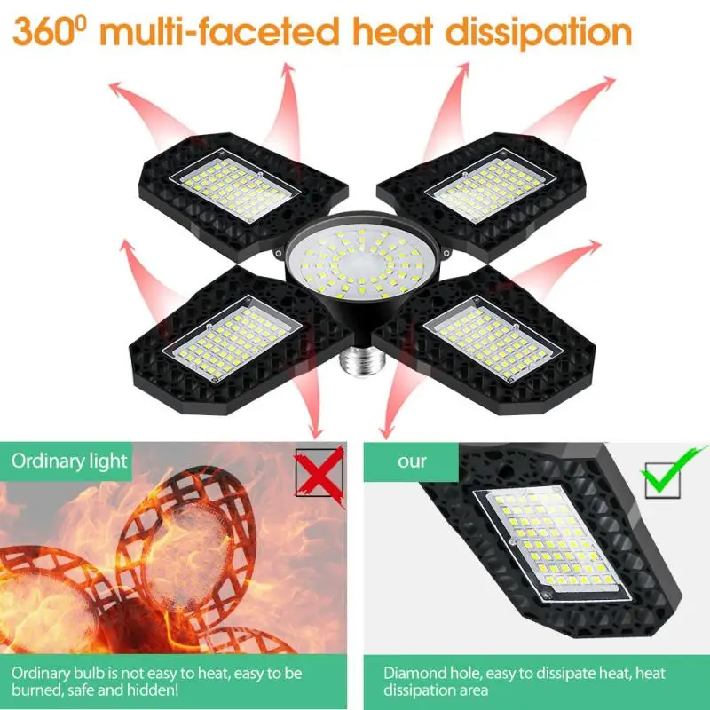 -Деформируемый потолочный светильник: светодиодное освещение гаража светильник с уникальной регулируемой широкоугольной конструкцией, Каждое крыло регулируется на 90 градусов, что может иметь идеальную кривую распределения гарасветильник в соответствии с вашим приложением, благодаря этому световое покрытие займет 360 °. Идеально подходит для гаража, мастерской, склада, подвала, автомагазинов, автопортов, почтовых отправлений, мастерской, где угодно нужен яркий светильник.