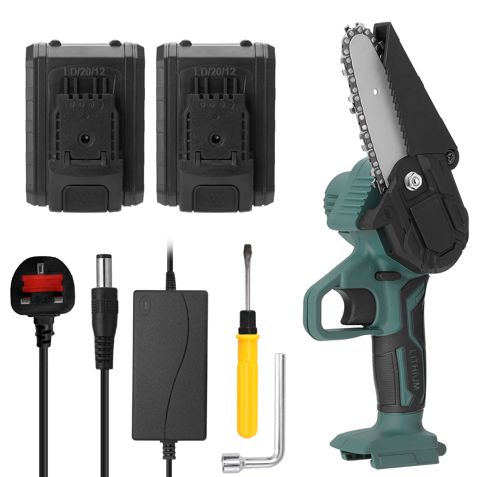 Сравните с другой пилой для обрезки, эта бензопила меньше и проще для вас, чтобы держать и использовать ее. Этот продукт изготовлен из тонкого материала, который практичен и прост в эксплуатации, имеет широкое применение и имеет длительный срок службы, поэтому вам не нужно часто менять их. Этот продукт идеально подходит для обрезки, сращивания, дров, резки древесины и так далее, приходите и попробуйте, он не подведет вас.Особенности:По сравнению с другими типами бензопилы, эта бензопила меньше и светильник, так что вы можете держать и использовать его более легко, который используется для большего количества людей.Эргономичный дизайн ручки, использование одной рукой, длительное сжатие не утомят руки.Беспроводной дизайн, легкий и портативный, легко носить и пилить дерево.Опилки были глубоко закалены высокой температурой, с резкими опилками, более износостойкие, гладкие резки.С высокой эффективностью работы, высокой точностью позиционирования, низким уровнем шума, что позволяет вам лучше использовать опыт.С быстрой скоростью резания, что является практичным и низким энергопотреблением, высокой стабильностью и высокой производительностью.Характеристики:Материал: АБС + металлОсновной цвет: зеленыйПитание: 2 * литиевая батарея, 21 в, 2000 мАч (в комплекте)Размер хоста после сборки: 330*110*100 мм/13,0*4,3*3,9 дюймовРазмер направляющей пластины: 129*34*3 мм/5,1*1,3 * 0.1inВес изделия: 1061 г/2,3 фунтаПосылка Размер: 300*120*110 мм/11,8*4,7 * 4.3inПосылка Вес: 1584g / 3.5lbУпаковочный лист:1 * хост1 * цепь1 * отвертка1 * рукав1 * направляющая пластина1 * Адаптер питания (Великобритания, ЕС, Австралия, США опционально)Аккумулятор 2*21 в1 * перегородка