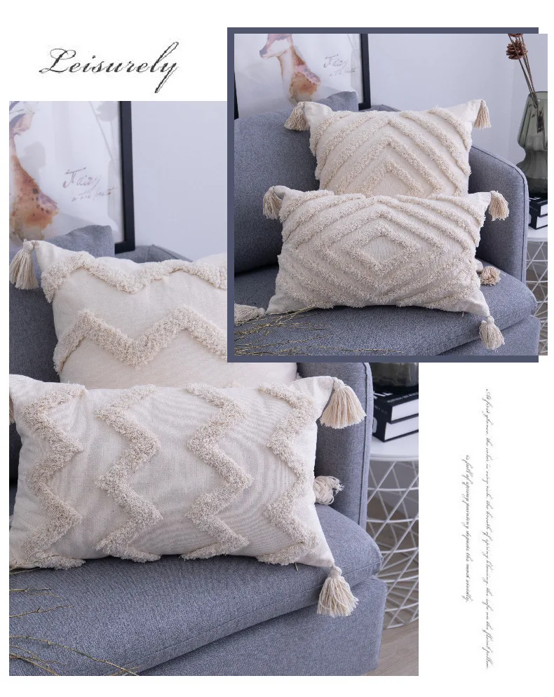 Наволочки с ворсом в стиле бохо, наволочки с кисточками, наволочки для подушек, современные декоративные подушки для кровати, фермерская наволочка, наволочка в полоску, квадратная наволочка