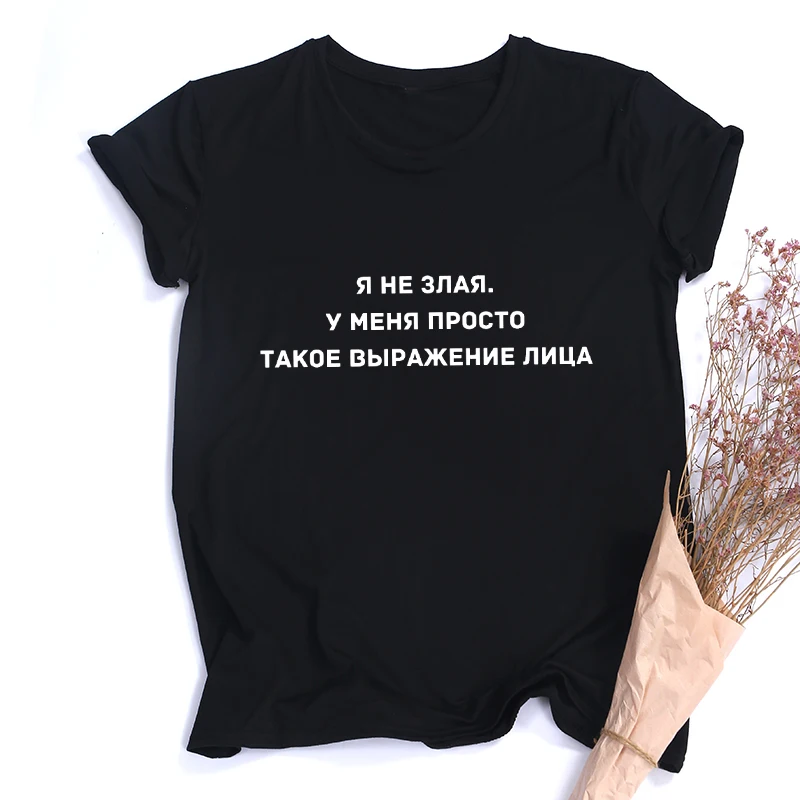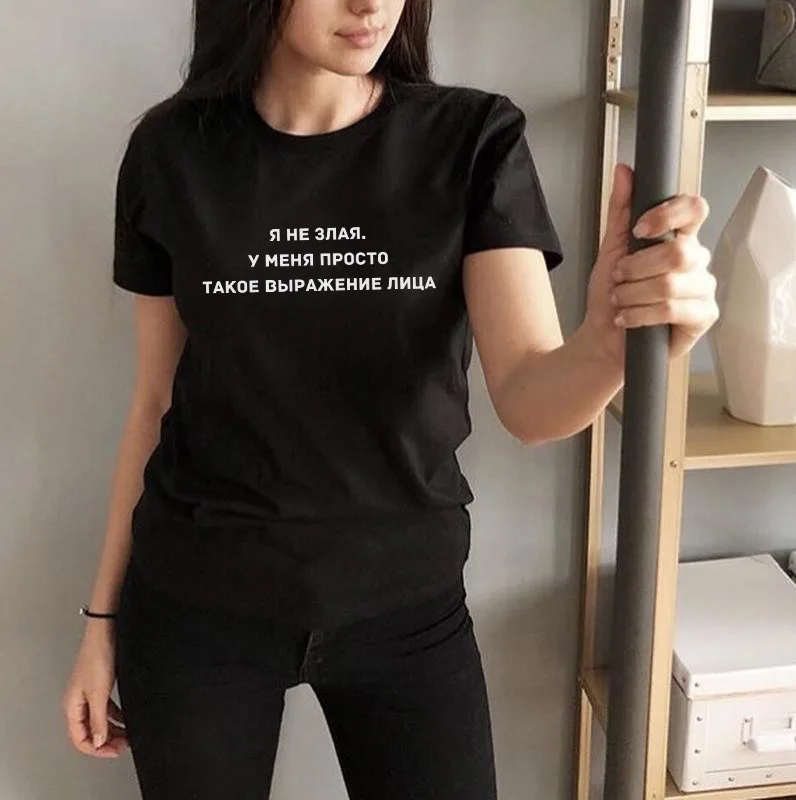 Я не злюсь у меня просто такое выражение женская футболка с русскими надписями Веселая футболка Летняя футболка
