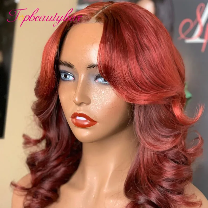 Парики для женщин 99J, бордовые, 13X4, на сетке спереди, цветные, 1...