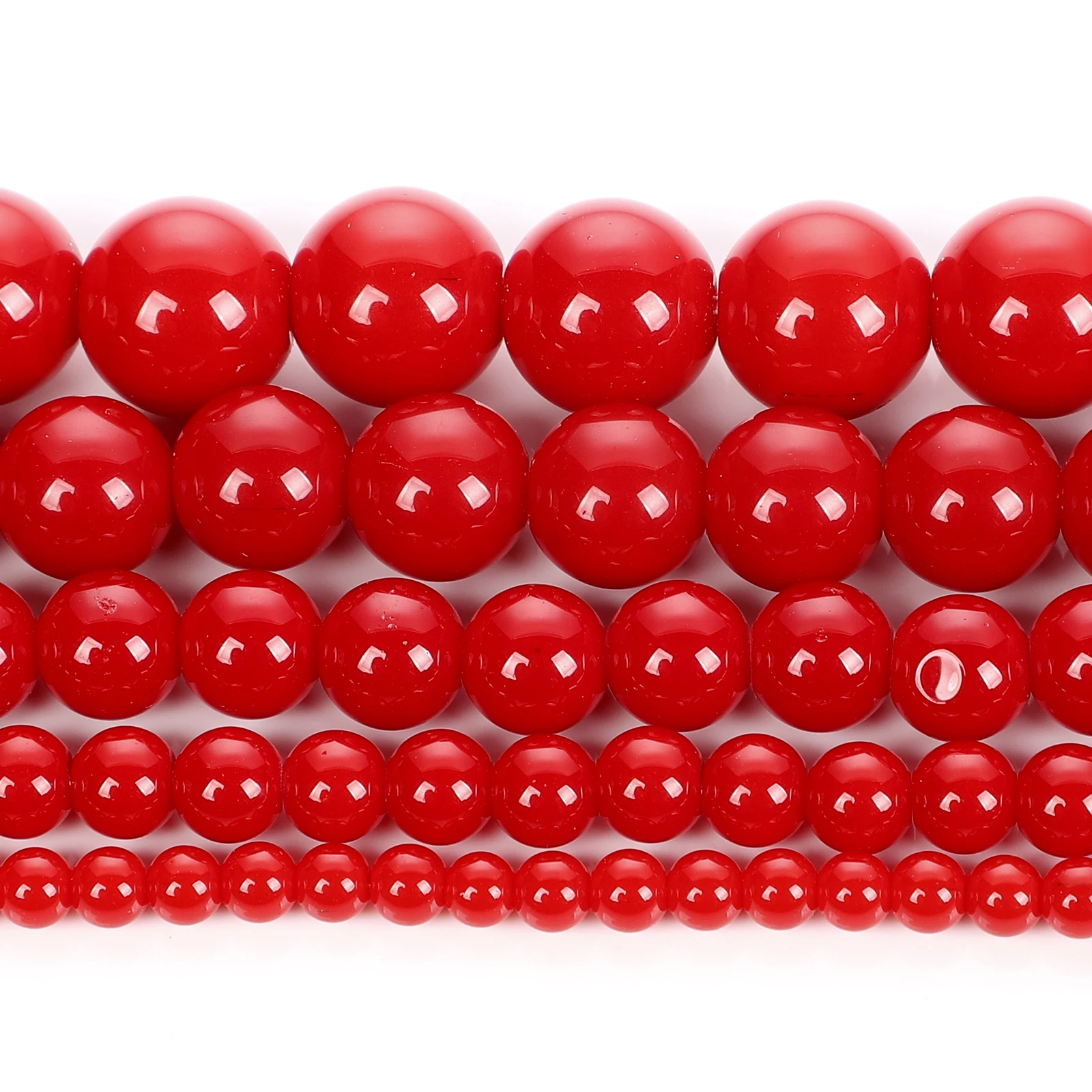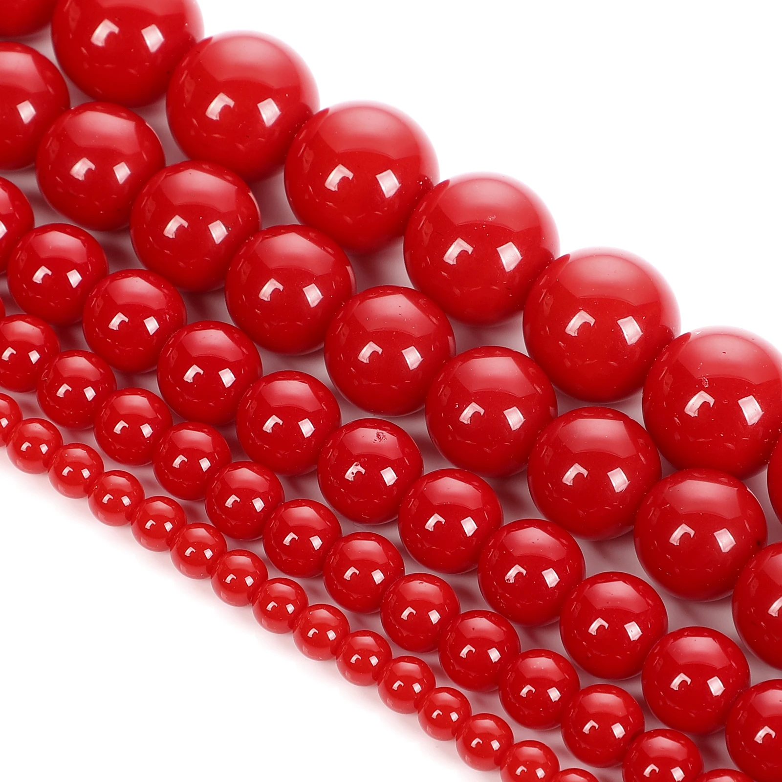 Бусины из натурального камня, имитация красного коралла, нефрита, круглые бусины россыпью для изготовления ювелирных изделий, браслетов для рукоделия, 4-12 мм