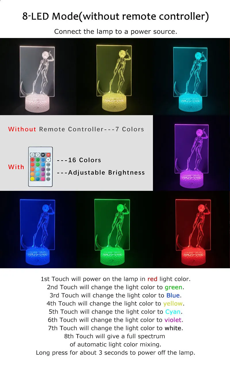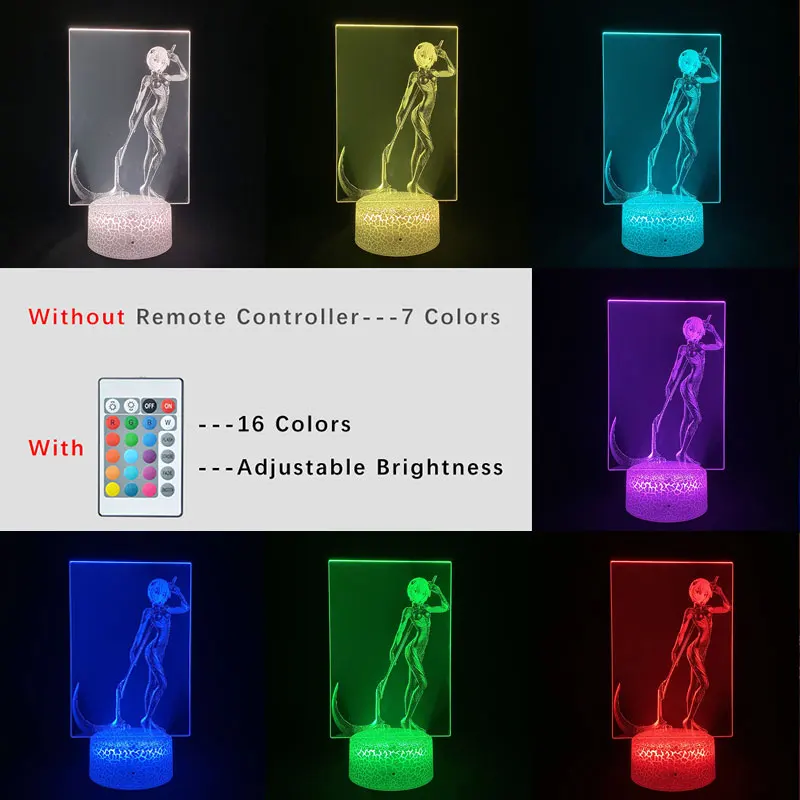 3D светодиодный ночник, детский Настольный светильник с RGB-подсветкой, цветсветильник аниме, Эва, Аянами, Рей, фигурка, любители украшения для спальни, подарок