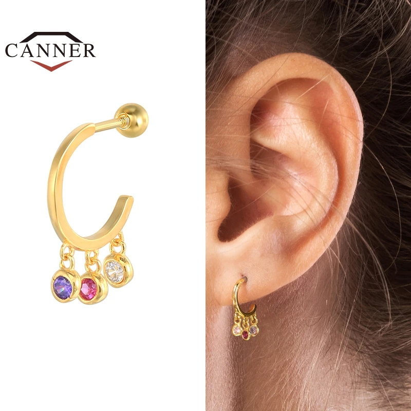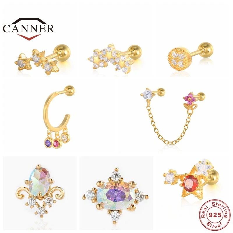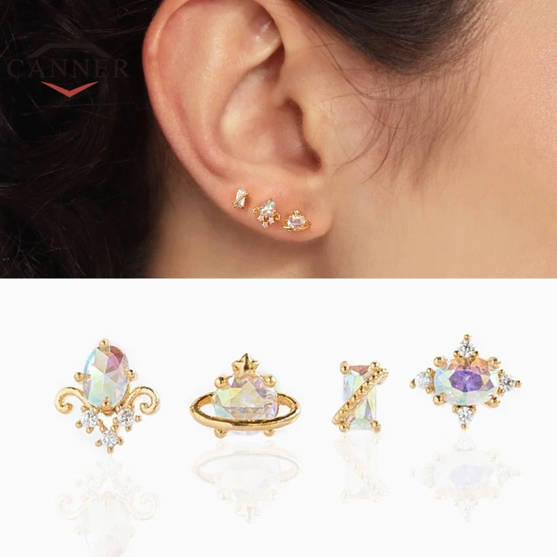 Женские серьги-гвоздики CANNER, маленькие серьги из серебра 925 пробы с радужным бриллиантом и цирконием, Ювелирное Украшение