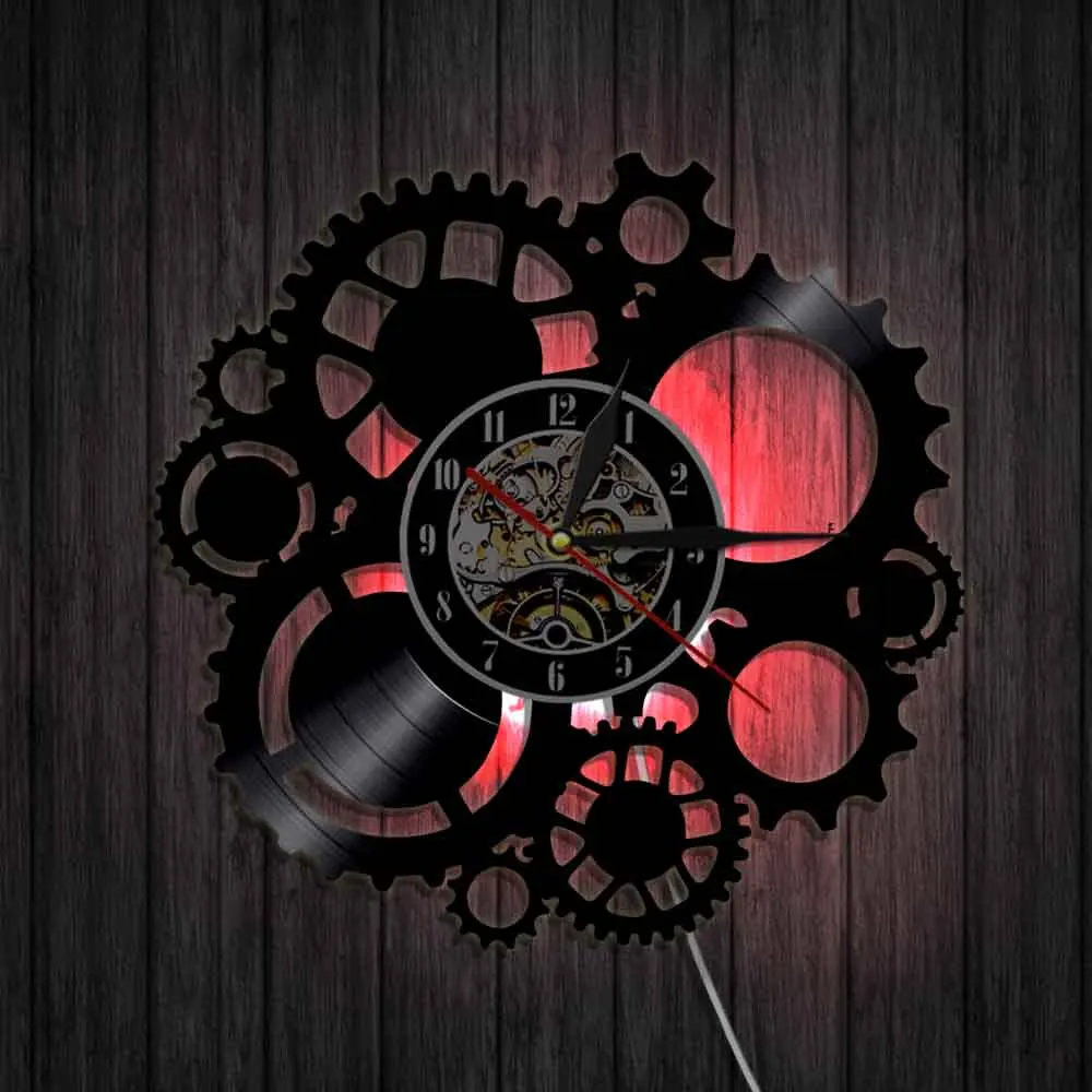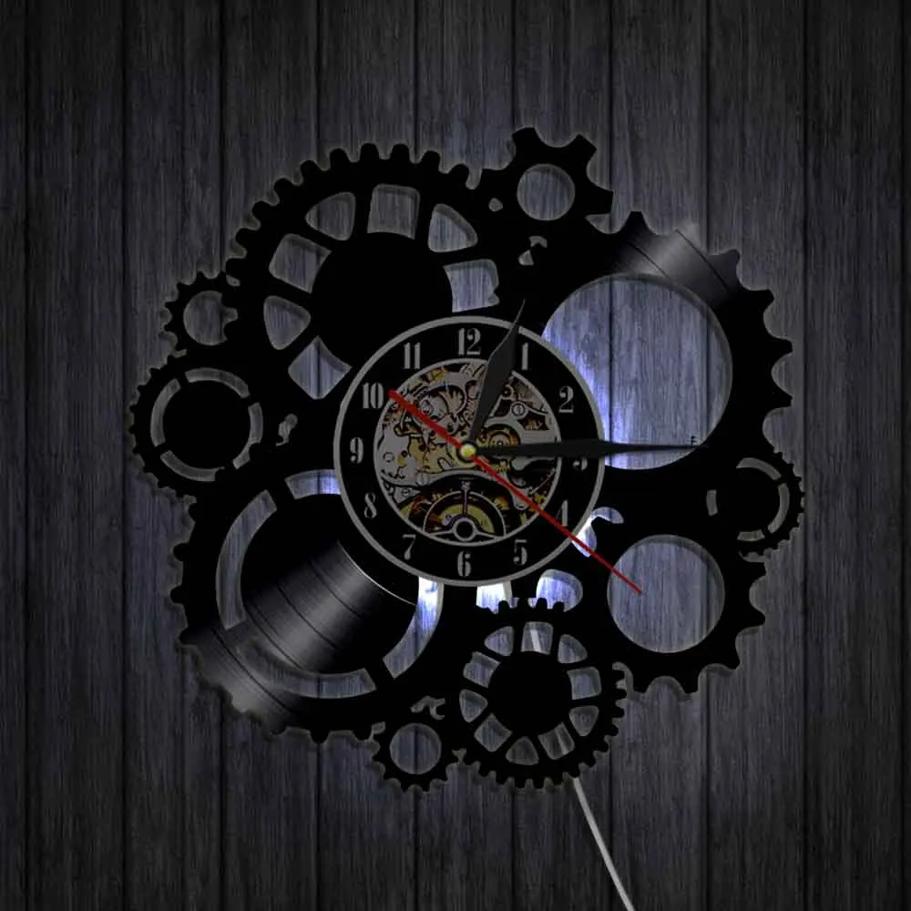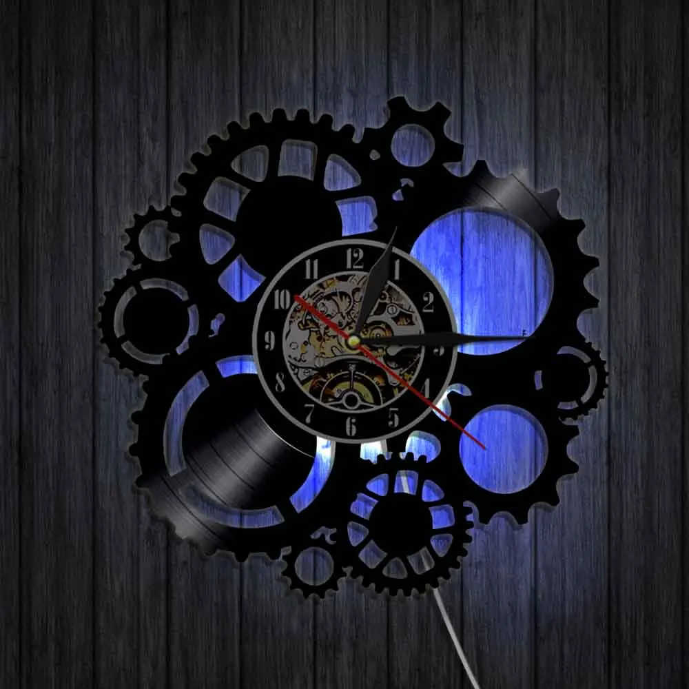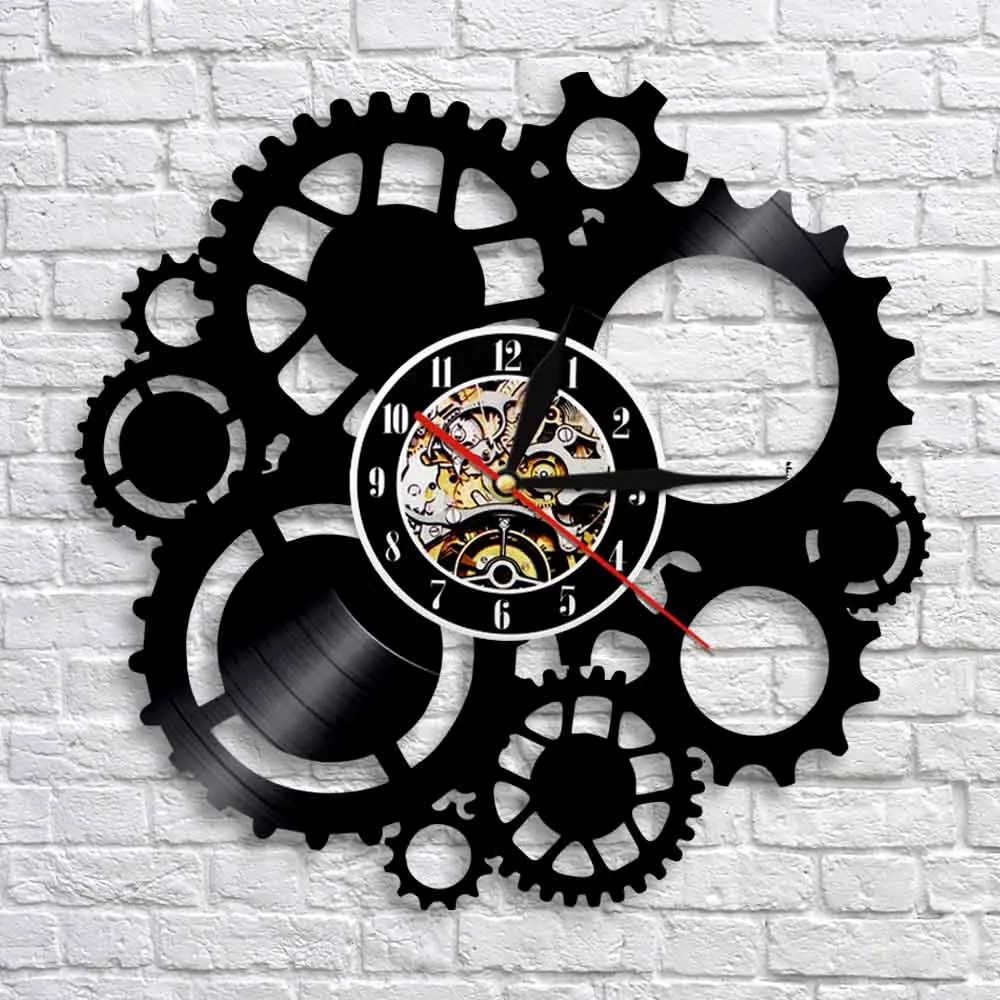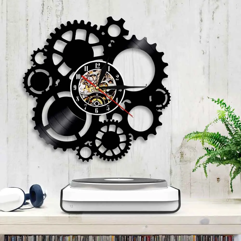 Настенные часы в стиле стимпанк с виниловой пластиной, викторианские индустриальные, в стиле стимпанк, шестеренки и колышки для украшения, Подвесные часы, подарок для фаната цикла