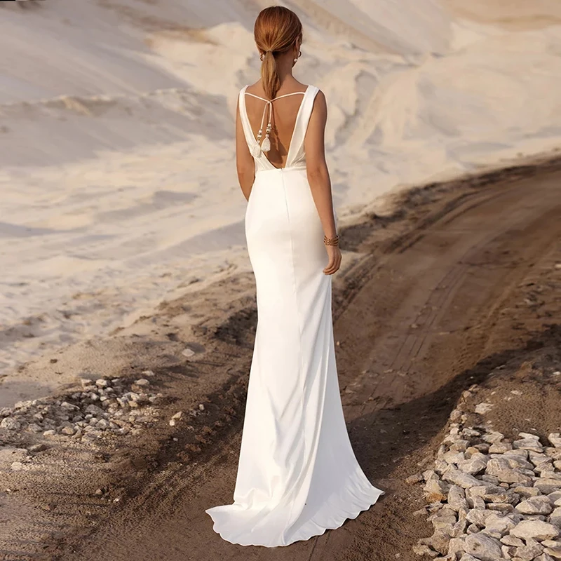 Женское свадебное платье с юбкой-годе, элегантное облегающее платье цвета слоновой кости без рукавов, свадебное платье с вырезом лодочкой и плиссировкой на спине, распродажа