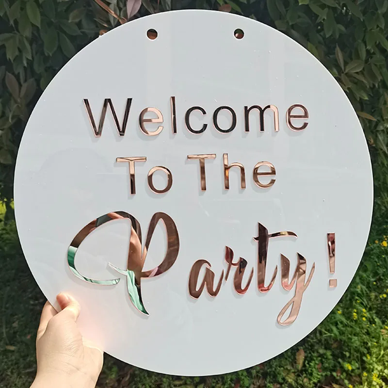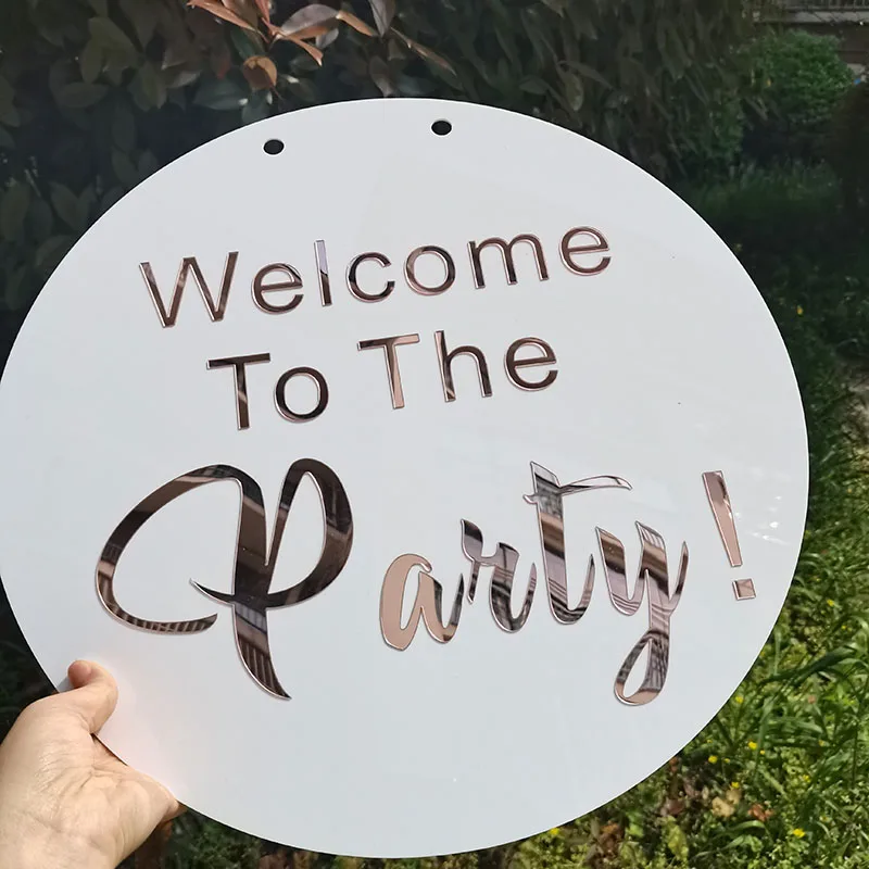 Белый акриловый приветственный знак круглой формы, зеркальный акриловый круглый, для подвешивания