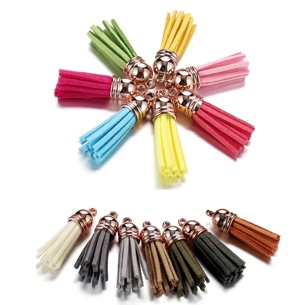 20 шт./лот 38 мм кожаная кисточка для брелка на ремешке ювелирное волокно бахрома замша кисточка DIY брелок Подвески Ювелирные аксессуары