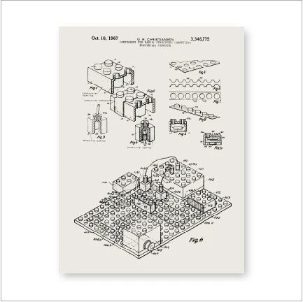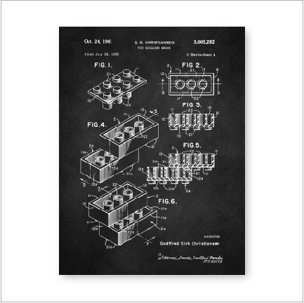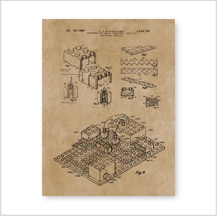 Детский плакат, винтажный чертеж, картина из блоков Лего, патент, и...