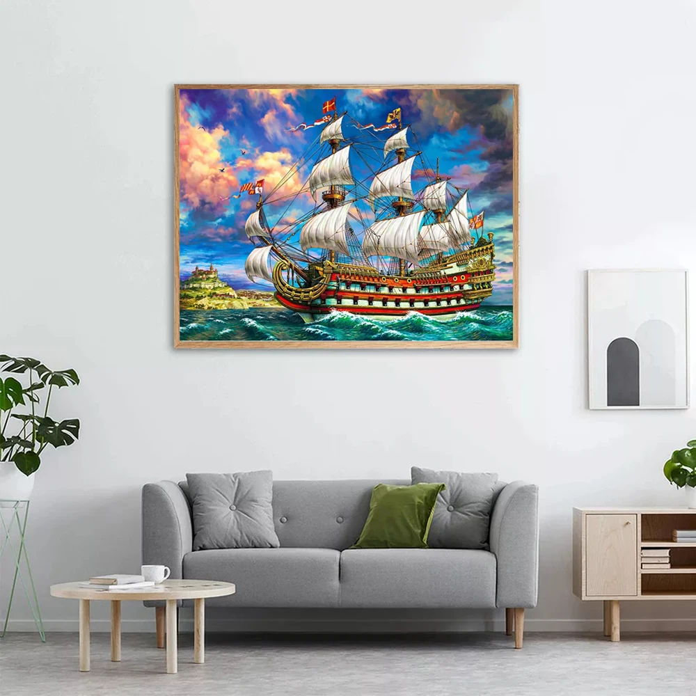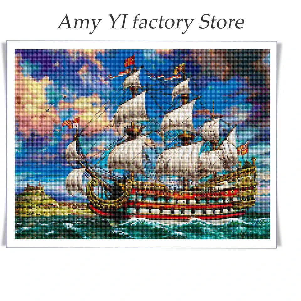 Картина, парусная лодка с алмазной тематикой, полная 5D Вышивка, алмаз, пейзаж, мозаика, рукоделие, украшение для дома