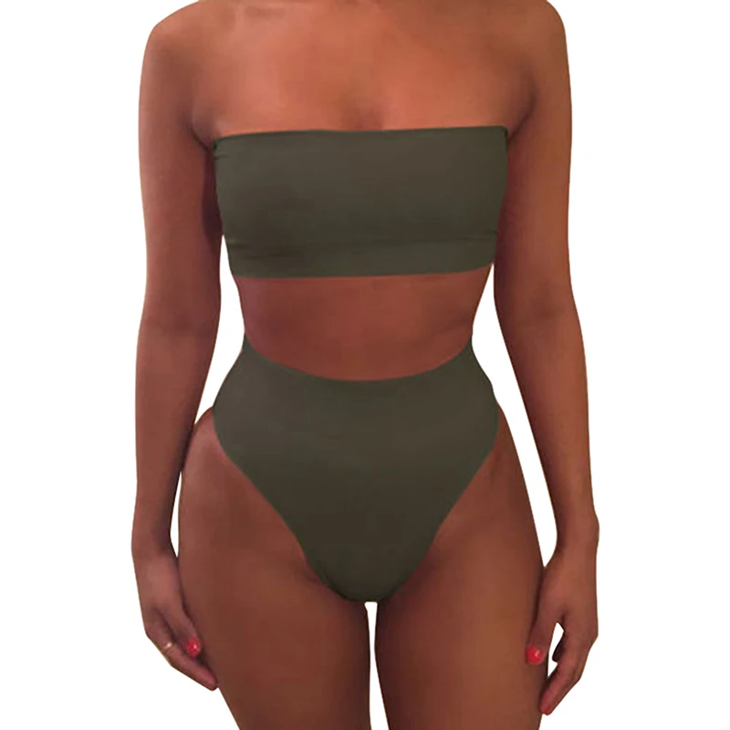 Купальник-бикини женский с высокой талией, однотонный пикантный купальный костюм с чашками пуш-ап, s, 2021