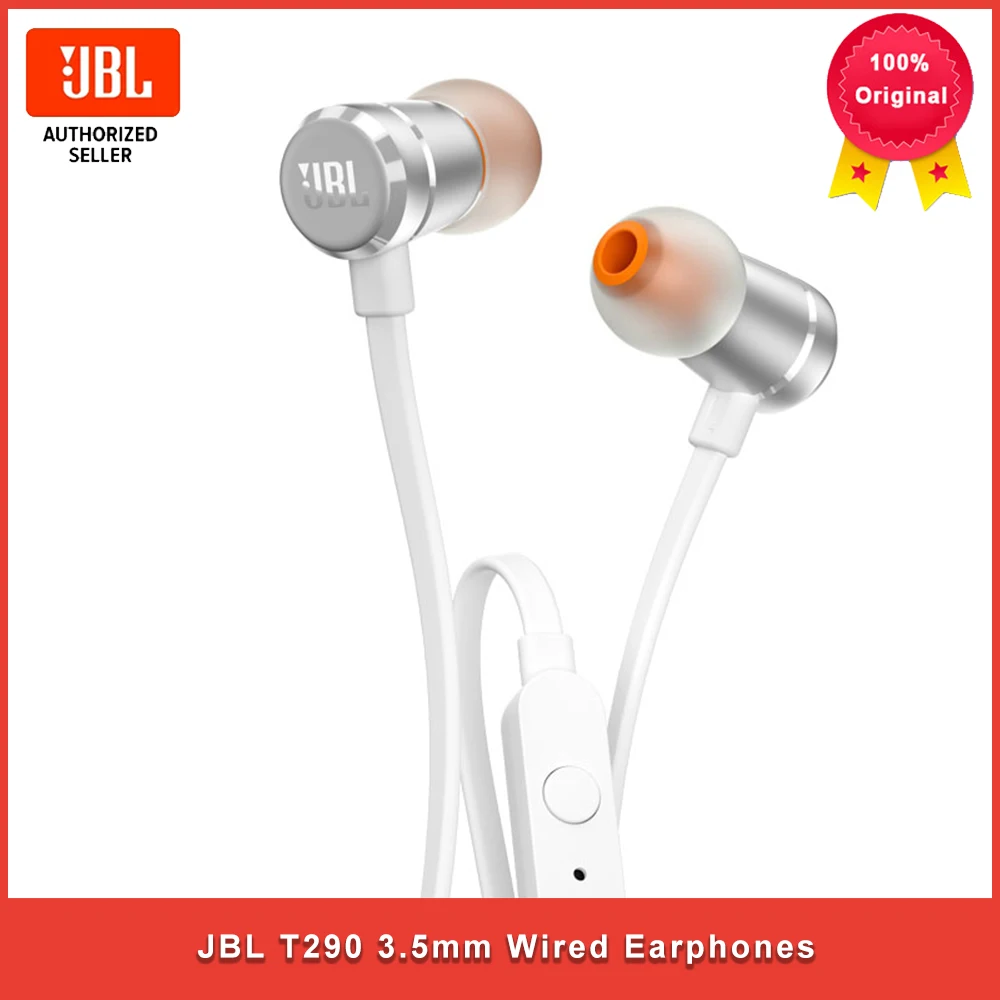 Проводные наушники JBL T290 3,5 мм, Спортивная стереогарнитура TUNE 290 с чистыми басами для музыки, 1-кнопочный пульт дистанционного управления, гарнитура с микрофоном