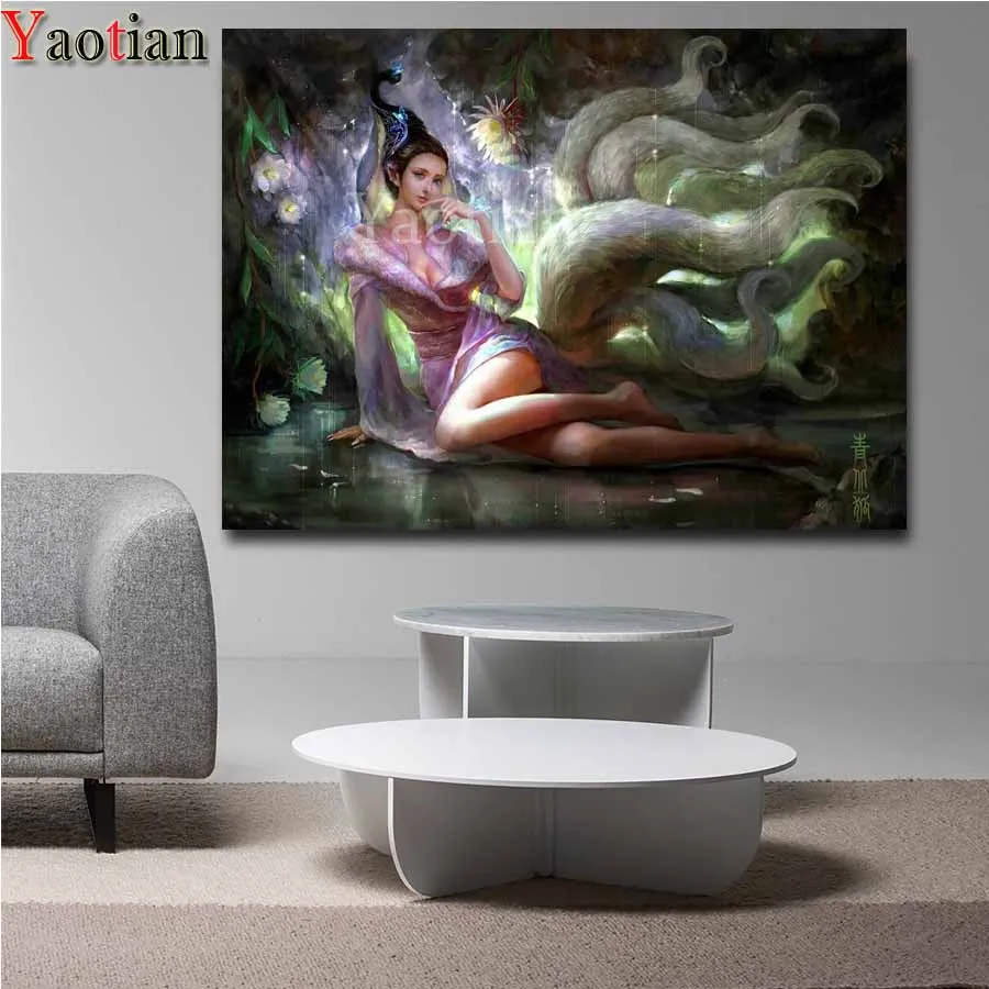 Алмазная картина с девятью хвостами, с изображением лисы, 5d, вышивка крестиком сделай сам, набор для алмазной вышивки, мозаика для домашнего декора