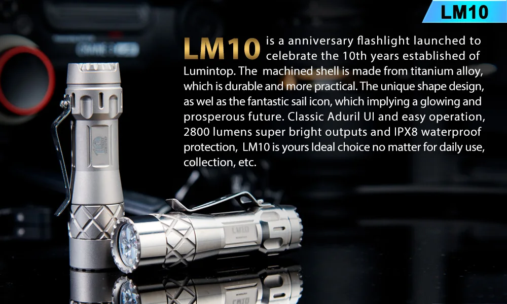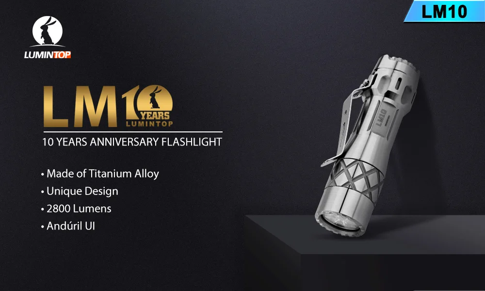 Титановый фонарик Lumintop LM10, плоская батарея 18650, поддержка 2800 люменов, тройсветодиодный с андурильским интерфейсом, фонарик для сбора