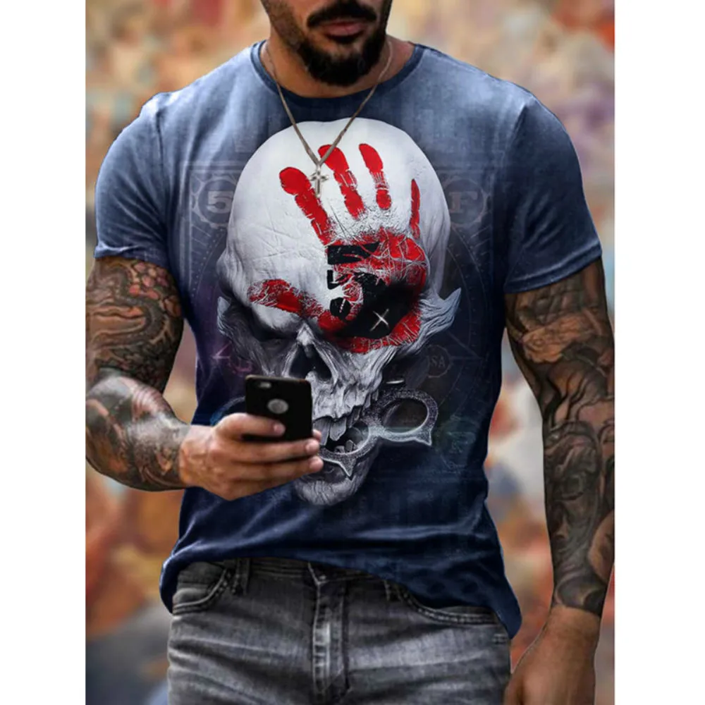 Мужская футболка, приталенная, с круглым вырезом и коротким рукавом, с принтом черепа, повседневная, летняя, базовая, 2021