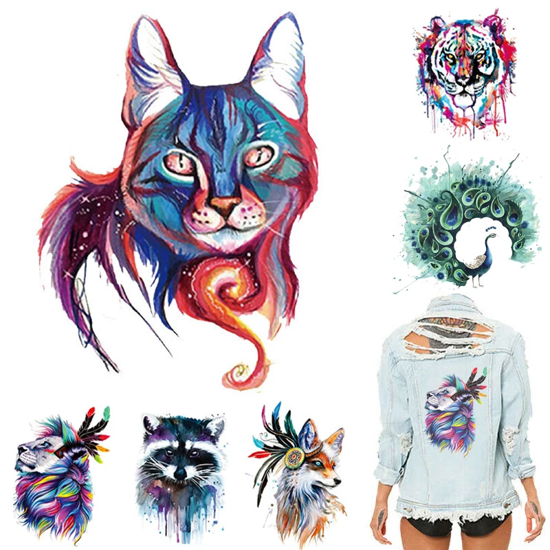 Термопресс для одежды, футболок, платьев, термонаклеек, цветной тигр нашивки с совой