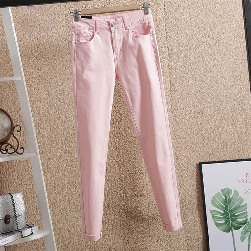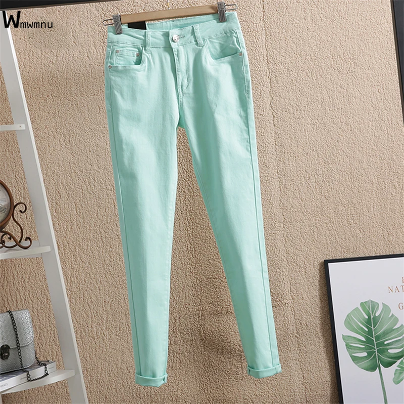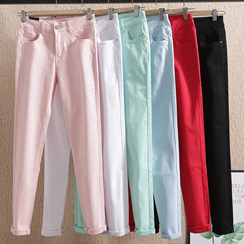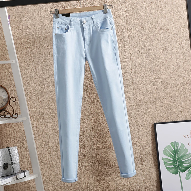 Базовые эластичные брюки до щиколотки, женские повседневные облегающие джинсовые брюки-карандаш ярких цветов, женские весенние однотонные джинсы из 95% хлопка