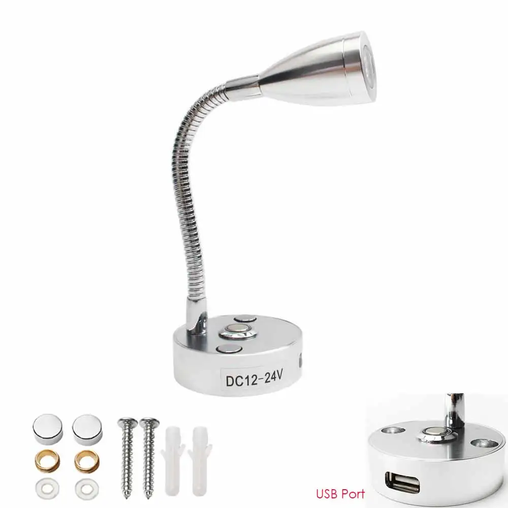 DC12V 24V RV светодиодный светильник для чтения с регулируемой яркостью, гибкая настенная лампа с гусиной шеей для спальни, интерьера, дома, дома, с usb-зарядным портом