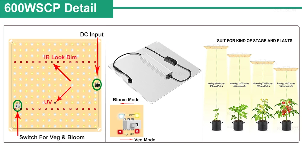 Характеристики: Светодиодный переключатель на плате, вы можете изменить модель VEG и BLOOM
