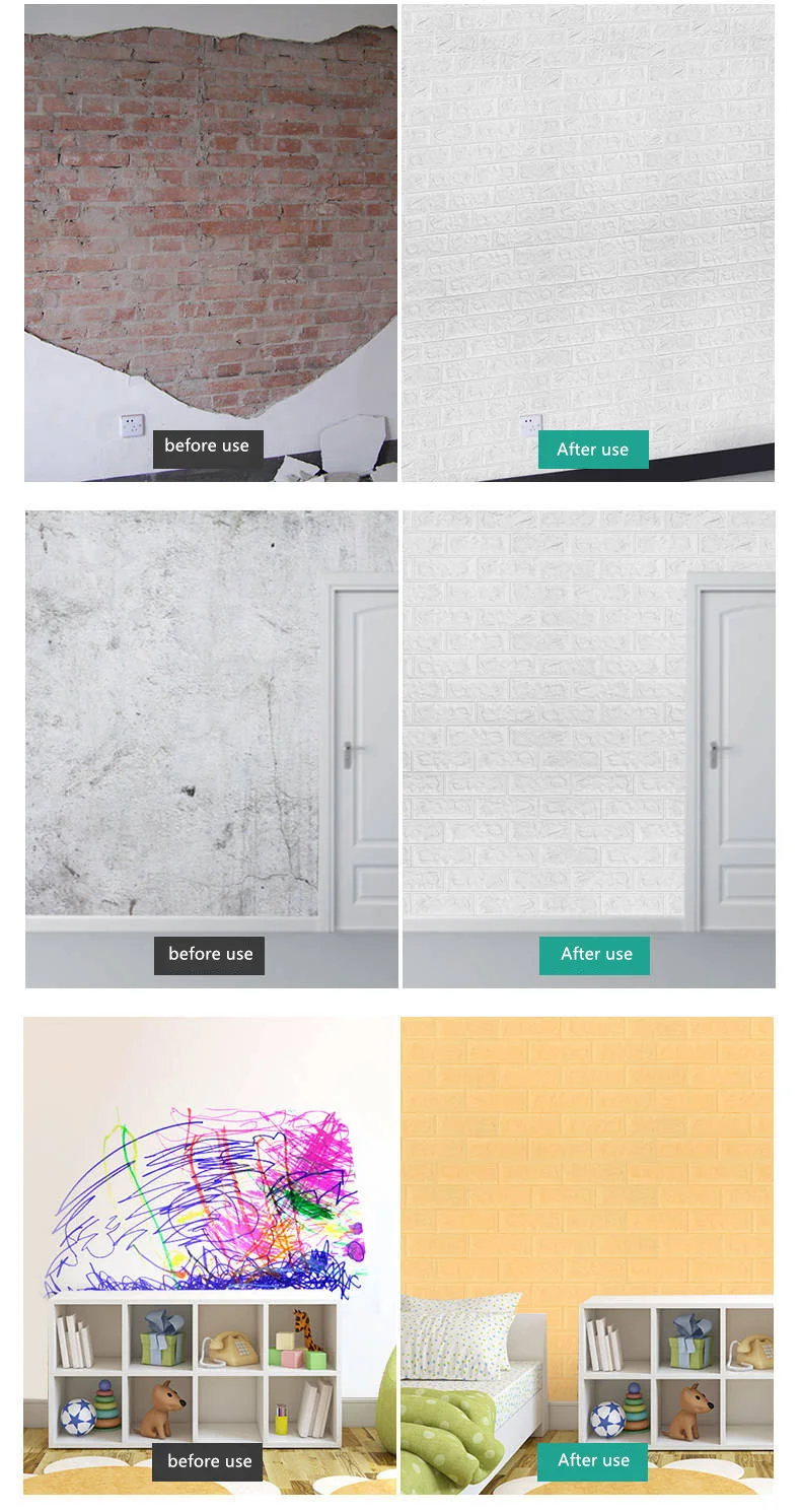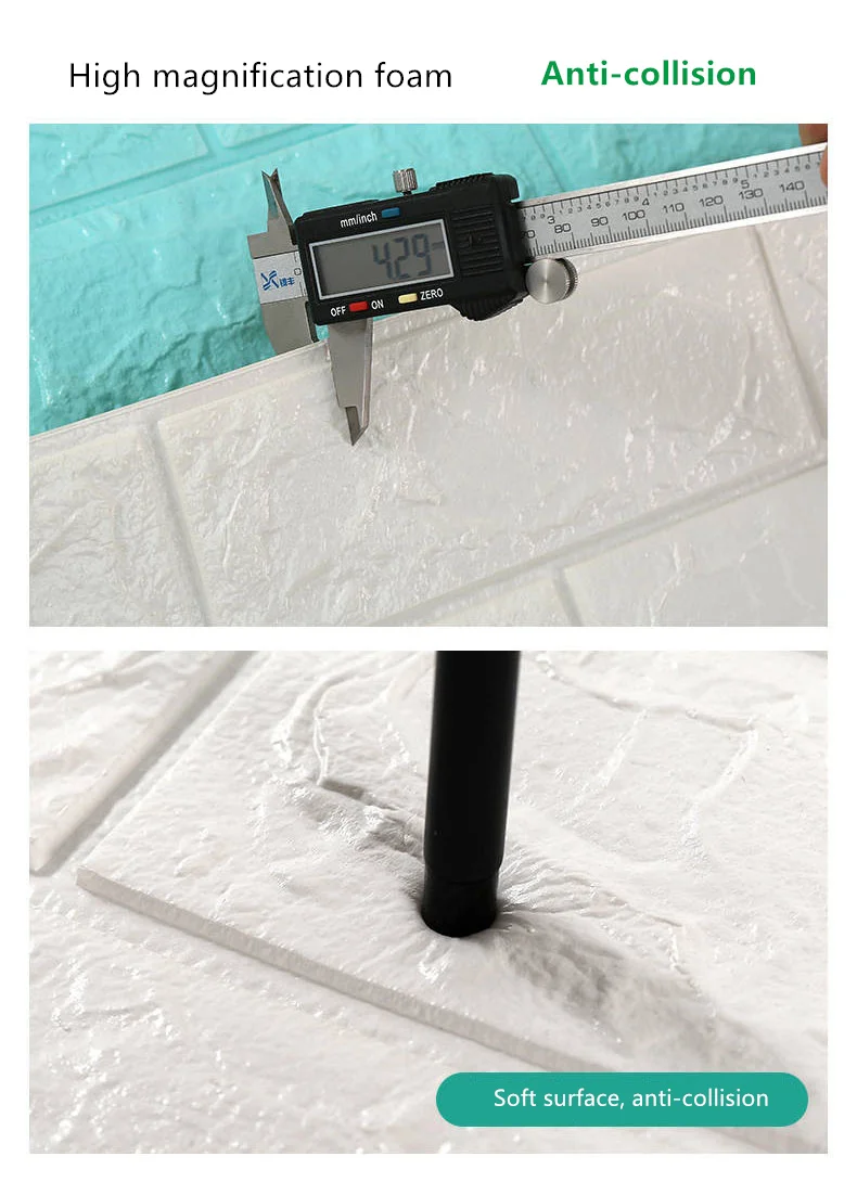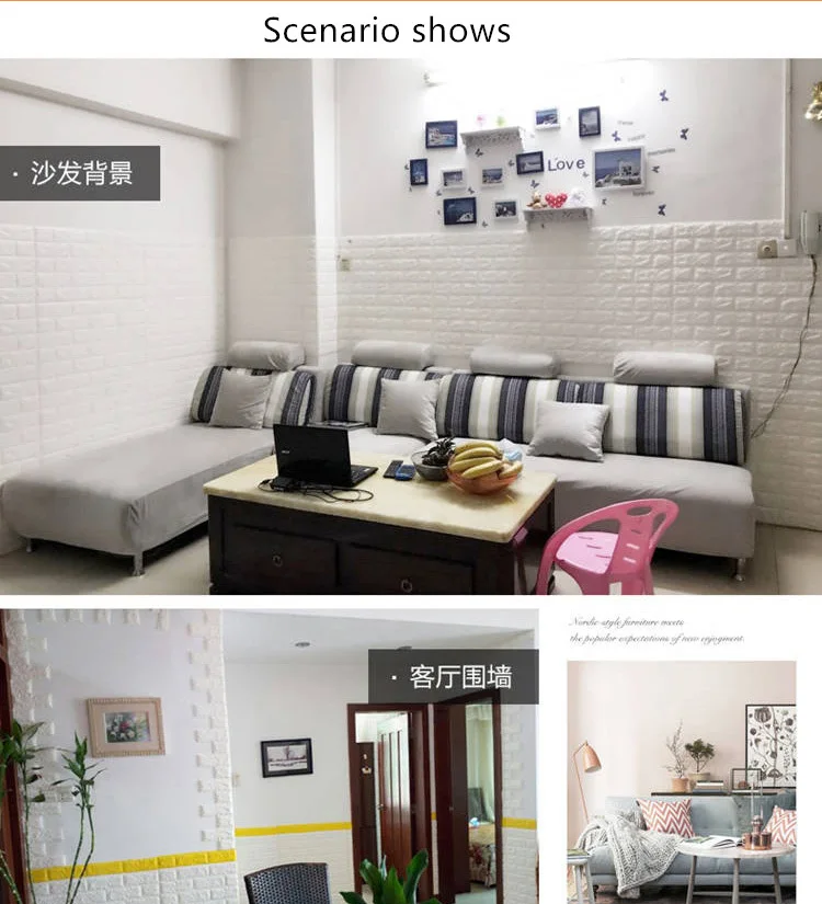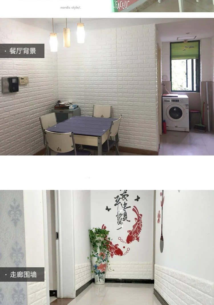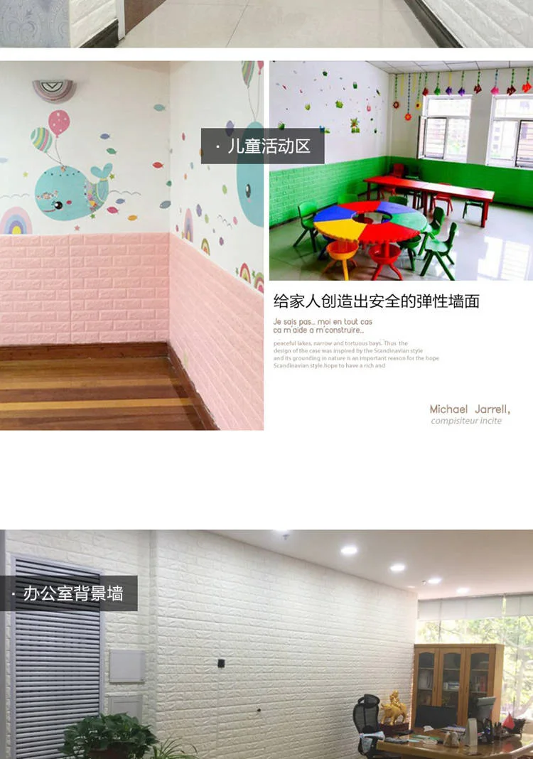 1: трехмерная декоративная мягкая пена, предотвращение столкновений для детей, забота о вашей семье в безопасности. 2: Безопасность и защита окружающей среды, не токсичен без запаха, подходит для семейного безопасного домашнего пространства. 3: Реалистичный, эффект естественного узора кирпича, простой и современный стиль. 4: Бесплатный самоклеящийся дизайн, установка, случайный коллаж, произвольный разрез. 5: сравнение обоев улучшает эффект шумоподавления.