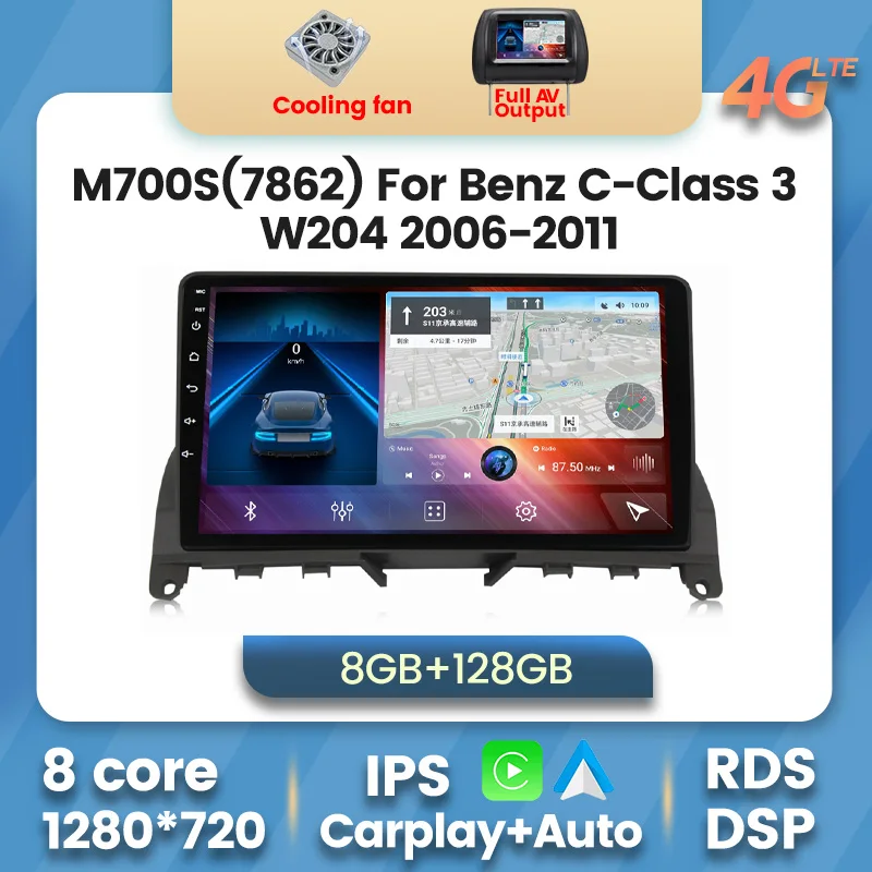 Автомобильная стереосистема 2 DIN 4G LTE для Mercedes Benz C Class 3 W204 S204 2006 - 2011 Android 11, автомобильный радиоприемник GPS Navi Multimidia Player 8 + 128G