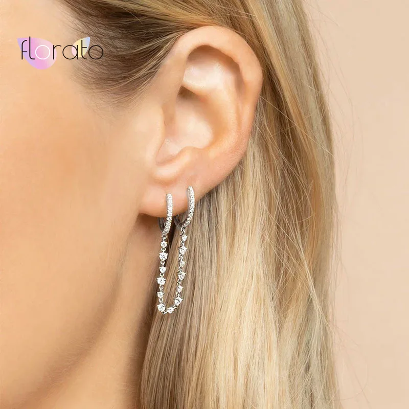 Серьги-кольца из стерлингового серебра 925 пробы с пряжкой для ушей, 1 шт., серьги-кольца с двумя отверстиями для женщин, цветные Серьги-цепочки с кристаллами, маленькие серьги, вечерние ювелирные изделия
