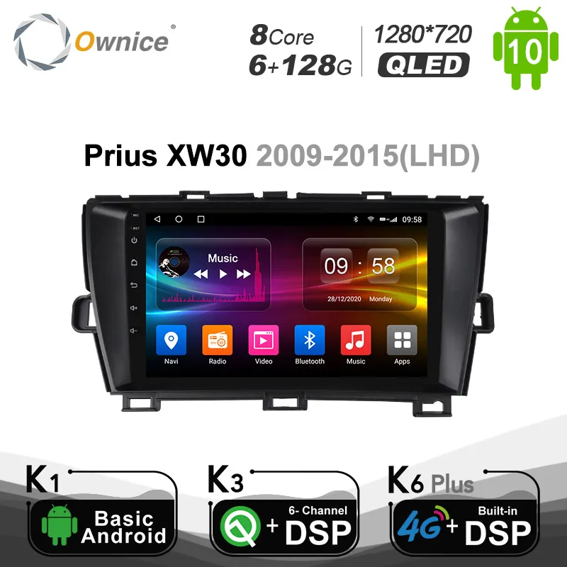 Автомобильный dvd-плеер Ownice, 6 ГБ + 128 Гб, DSP, 2Din, Android 10,0, GPS для Toyota Prius XW30 2009 - 2015, 4G, автомобильное радио, навигация, аудио 1280*720