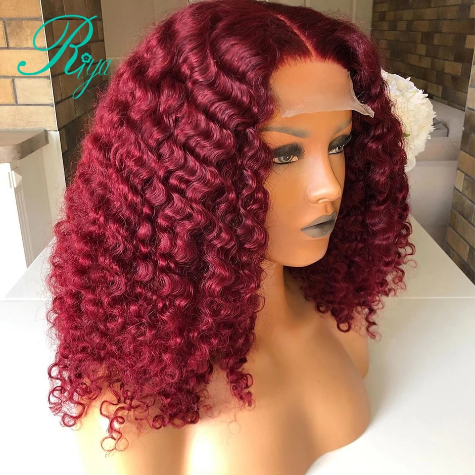 Красный бордовый 99J цвет Пикси кудрявые короткие Боб срезанные тупые кружева передние человеческие волосы парики 4X4 кружево Закрытие парик PrePlucked парик Remy Волосы