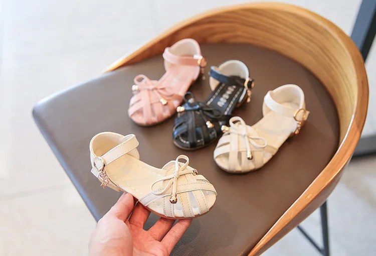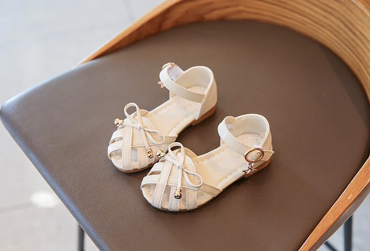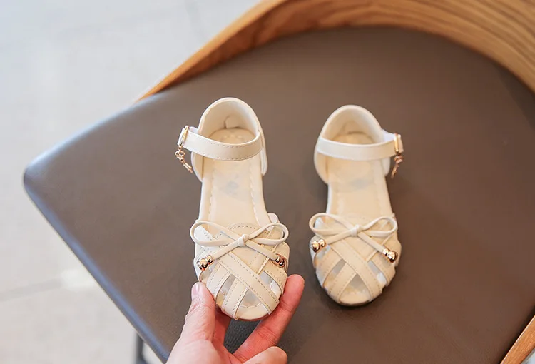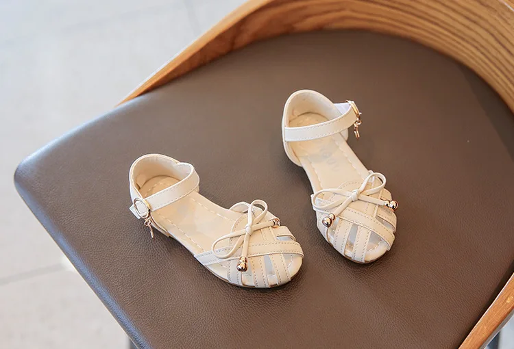 Детские сандалии для девочек, летняя обувь для детей, новинка 2021, красивые мягкие кожаные сандалии принцессы с вырезами и бантом, 21-35