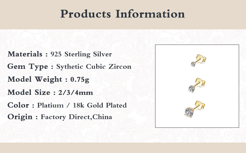 ROMAD 3 шт мини серьги-гвоздики набор 2/3/4 мм 925 стерлинговые серебряные серьги с бриллиантами для женщин серьги в форме сердца букле Oreille Femme