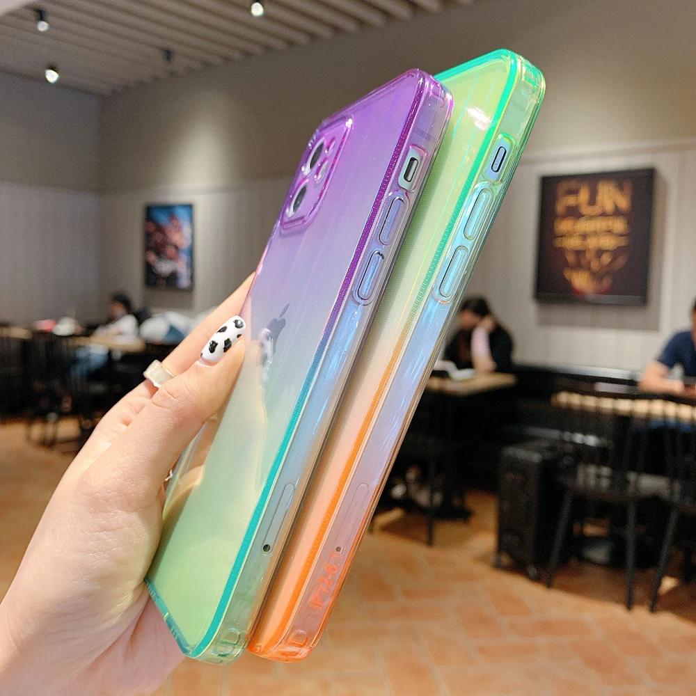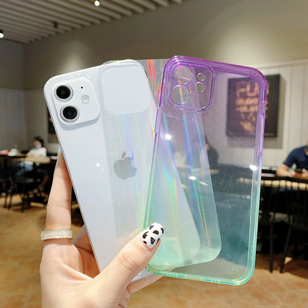 Градиентный лазерный цветной силиконовый чехол для телефона IPhone 11 12 13 Pro Max, противоударный чехол для IPhone 8 7 Plus XR X XS, мягкий чехол