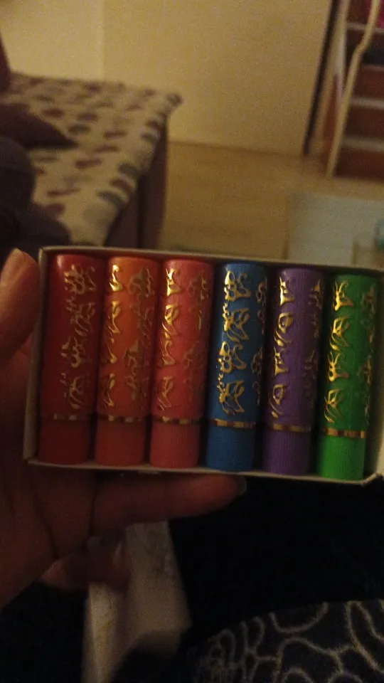 Я только что получил помады, и они мне очень понравились! Каждый имеет очень приятный и другой запах, ссылаясь на цвет. Зеленый прибыл с дефектом, но остальные идеально. Я не пробовал их, потому что они для подарков. Я рекомендую это. Спасибо продавцу!