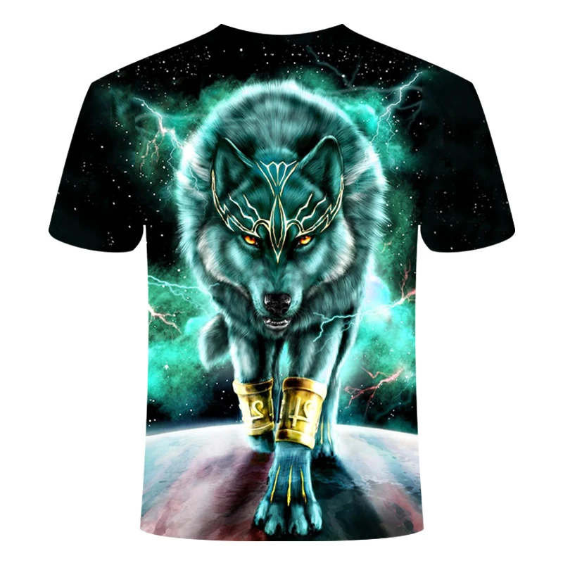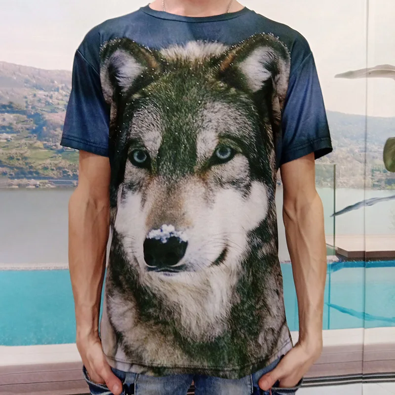 Футболка мужская с 3D-принтом волка, уличная одежда, топ с круглым ...