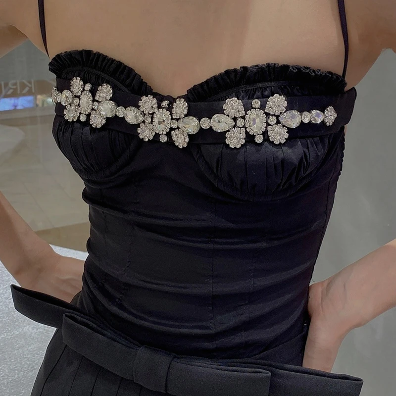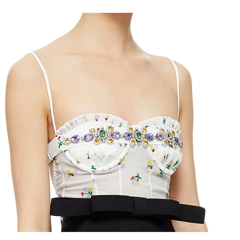 Летняя Сексуальная Роскошная блузка с цветочным принтом, украшенная бисером, Женский клубный Топ Без Рукавов на бретельках с открытой спиной, Женское боди, одежда Вечерние