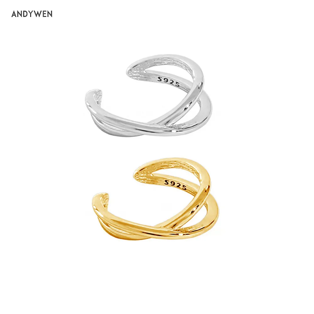 Женские асимметричные серьги-каффы ANDYWEN, из стерлингового серебра 925 пробы с геометрическим крестом, роскошные свадебные ювелирные украшения в подарок