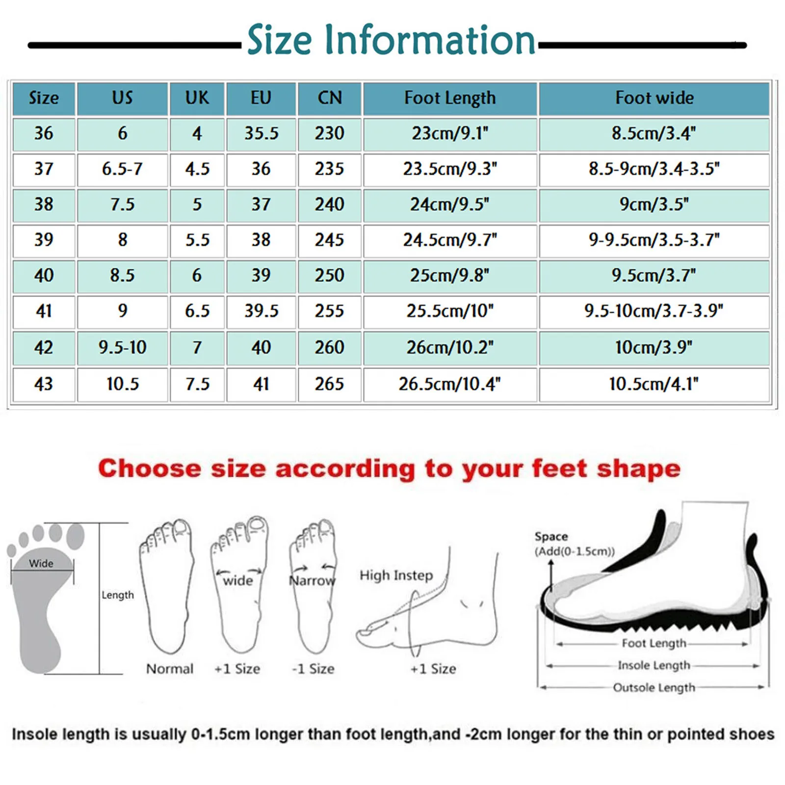 Теплое напоминание:Различные стили обуви, пожалуйста, выберите размер в соответствии с типом вашей стопы.