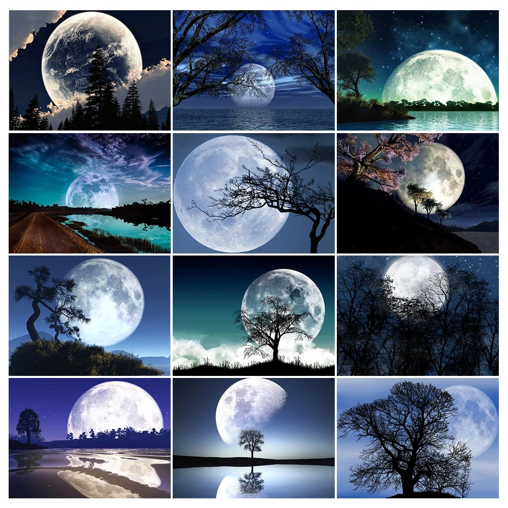 Алмазная 5d-картина сделай сам, луна, искусство, алмазная вышивка, ...