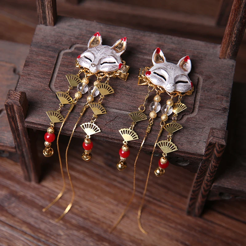 Заколка для волос с кисточками, для девочек, Винтажная заколка-пряжка для косплея, аксессуар для волос ручной работы, заколка для волос в виде кролика, 1 шт.