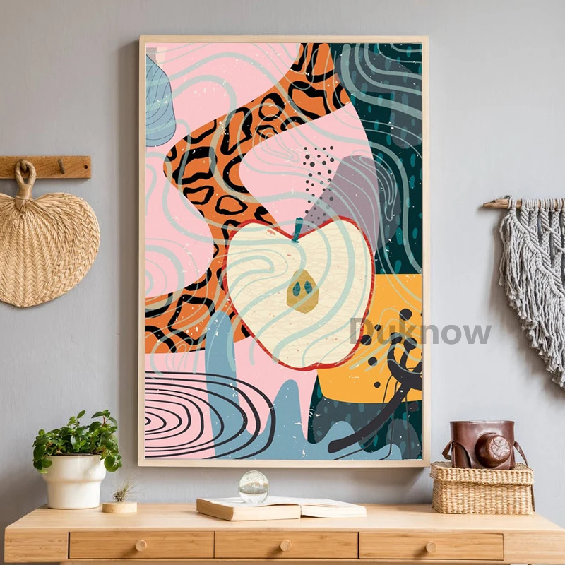 Красочные абстрактные плакаты и принты в стиле бохо с изображением яблока и змеи, настенная живопись на холсте для гостиной, домашнего декора