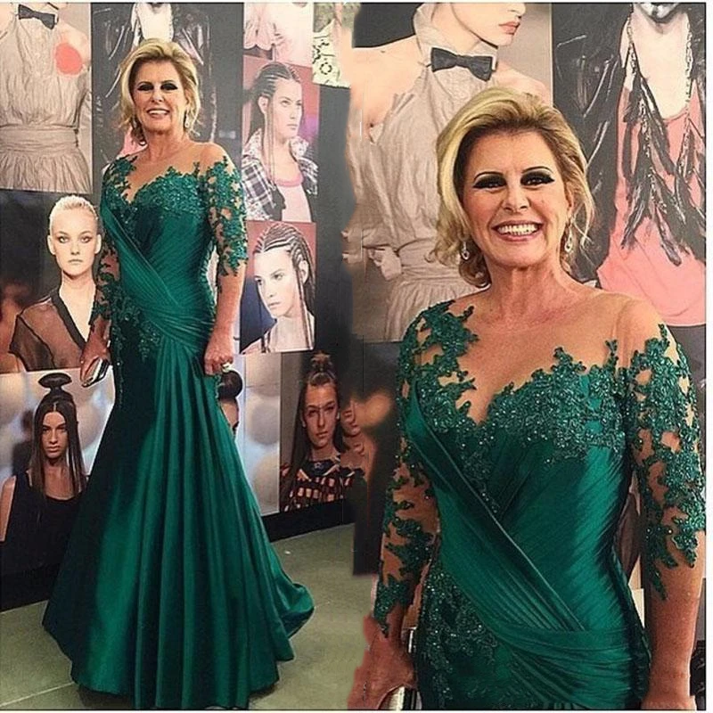 Темно-зеленые платья для матери невесты платья с длинным рукавом, с кружевами, Русалка, складка размера плюс, комплект вечерней одежды для дамы свадебные вечерние платья